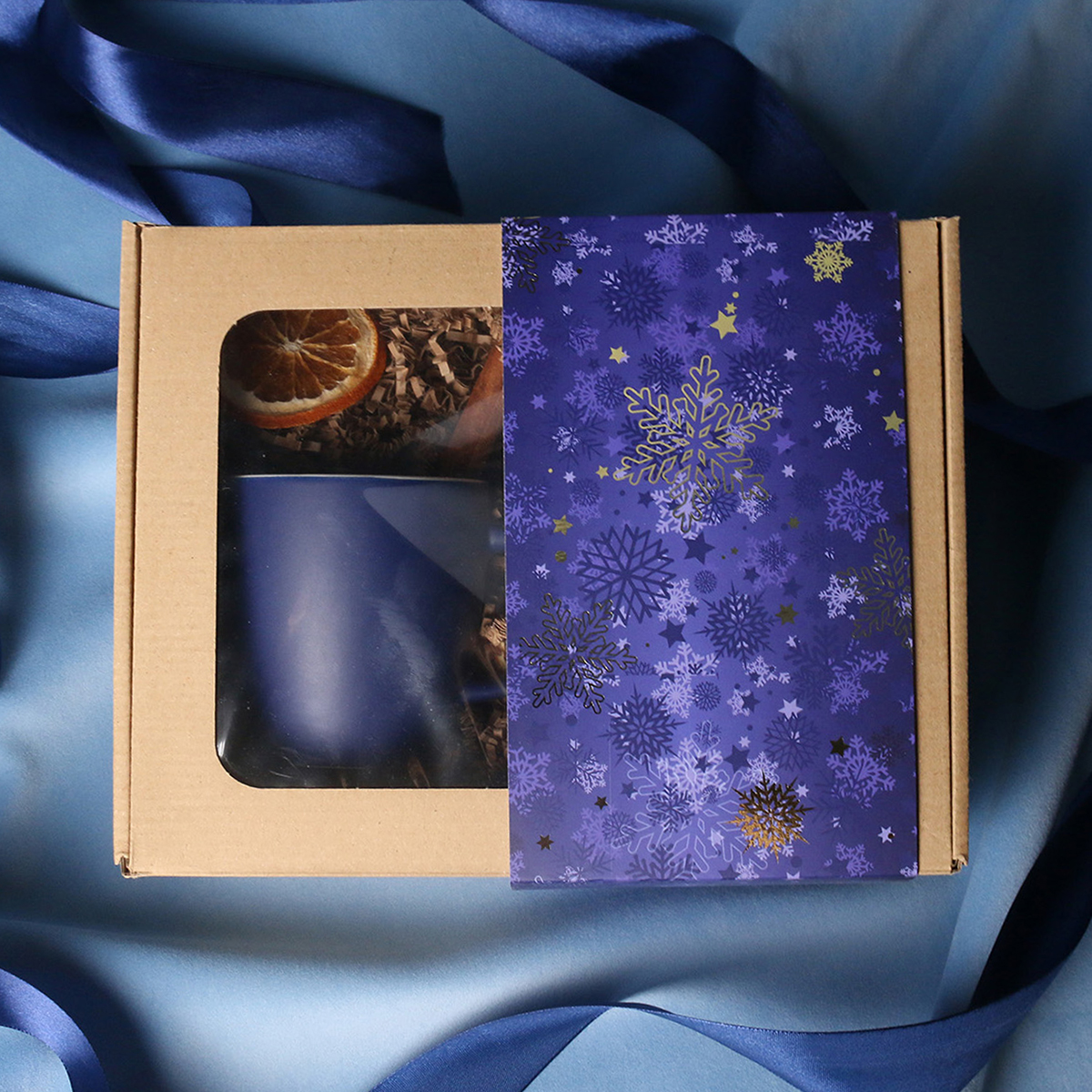 W skład zestawu wchodzą: kubek Fiord czerwono-biały / granatowy-biały / czarny-biały z możliwością zdobienia, Divine Pralines - żurawina w czekoladzie (czerwony) / borówki w czekoladzie (granatowy) / skórka pomarańczy w czekoladzie (czarny) Całość w stylowym opakowaniu z tektury eco z okienkiem. Opcje dodatkowej customizacji: nadruk na kubku, bilecik z logo firmy, wstążka lub obwoluta z motywem zimowym wzbogacona złoceniem